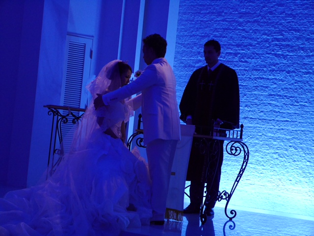 新婦様が新郎様と聖壇を上がって頂くシーンでは