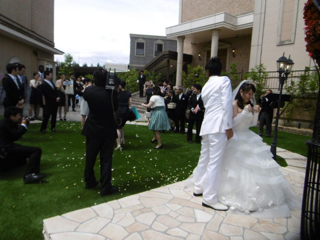 挙式後にガーデンでフラワーシャワーをしたり