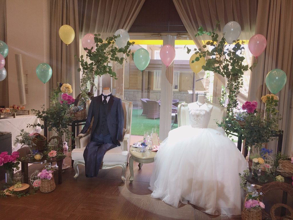 引き出物やブーケ、ドレスの展示が有り