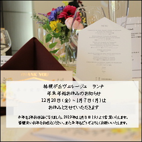 年末年始ランチ営業のおしらせ