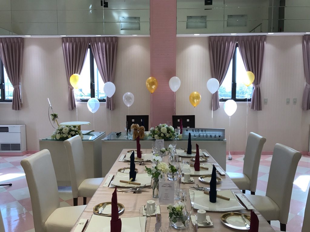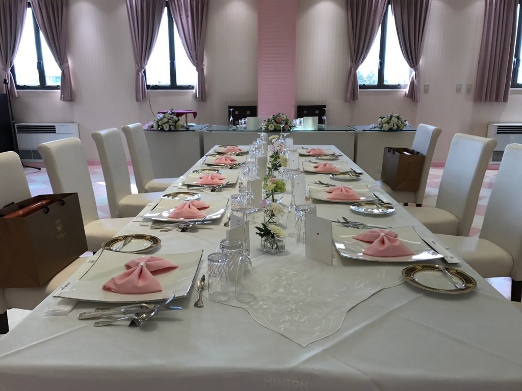 長テーブルで対面の食事会♡