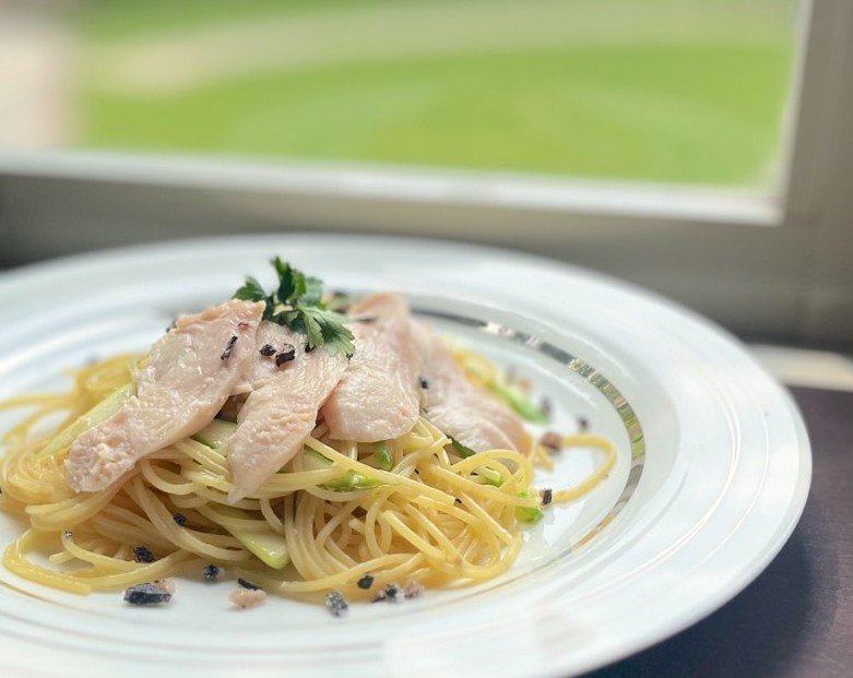 *ツナと茄子のトマトパスタ *スモークサーモンととうもろこしのクリームパスタ【new】 *サラダチキンとトリュフ塩のペペロンチーノ【new】 *鯛の炙り、塩昆布と舞茸のレモン和風パスタ