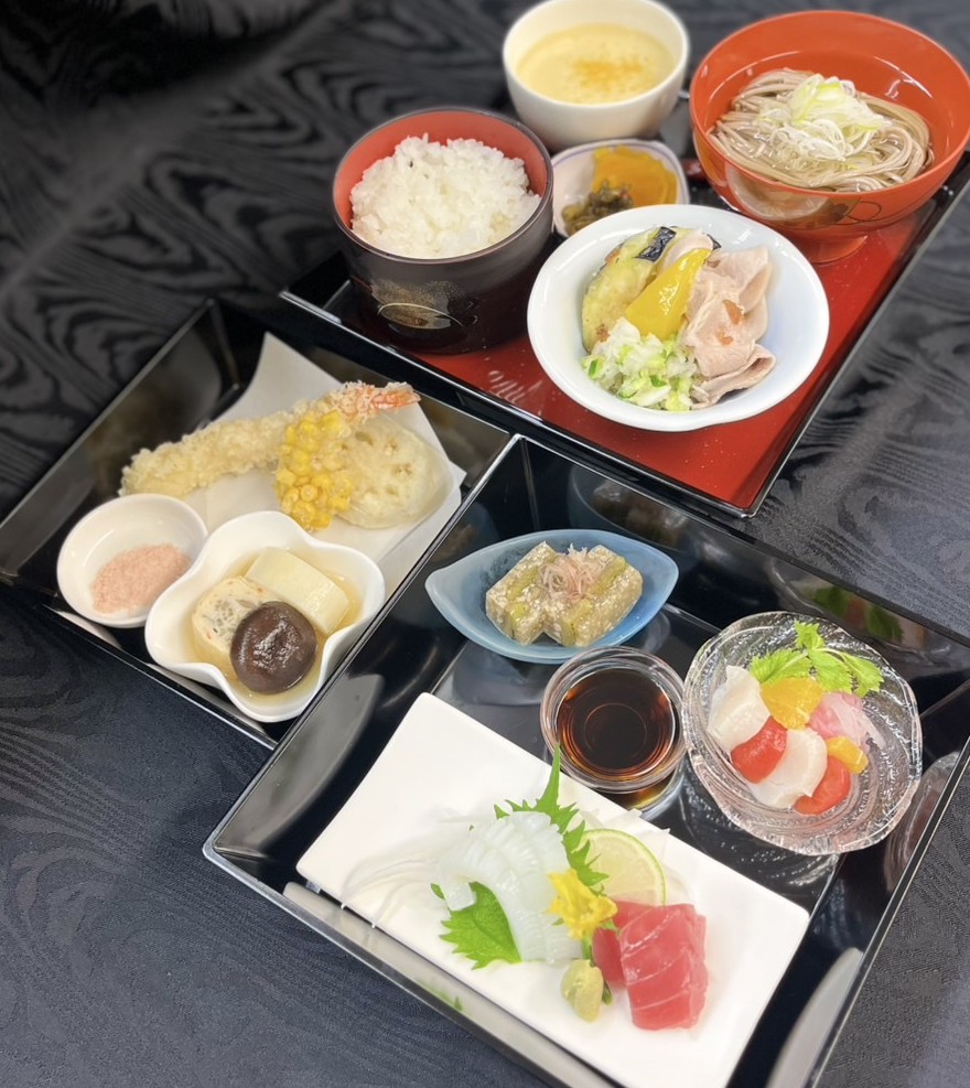 ・豚と夏野菜の梅ぽん酢掛け ・ホタテとトマトのマリネ ・焼き茄子の鶏そぼろ寄せ