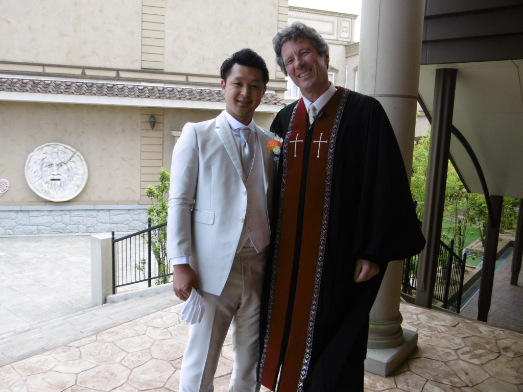 新郎KAZUYAさんは牧師さんとご入場!
