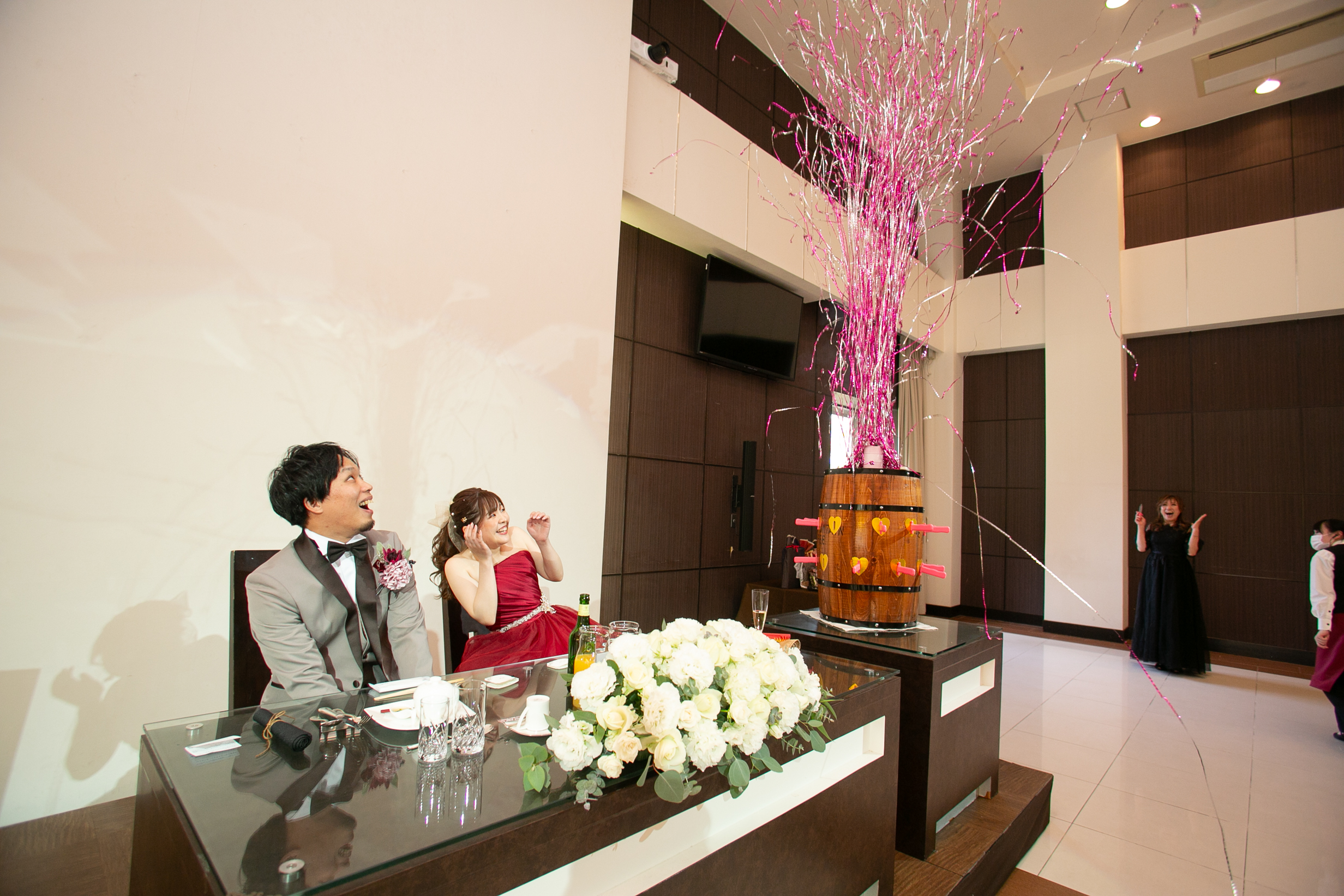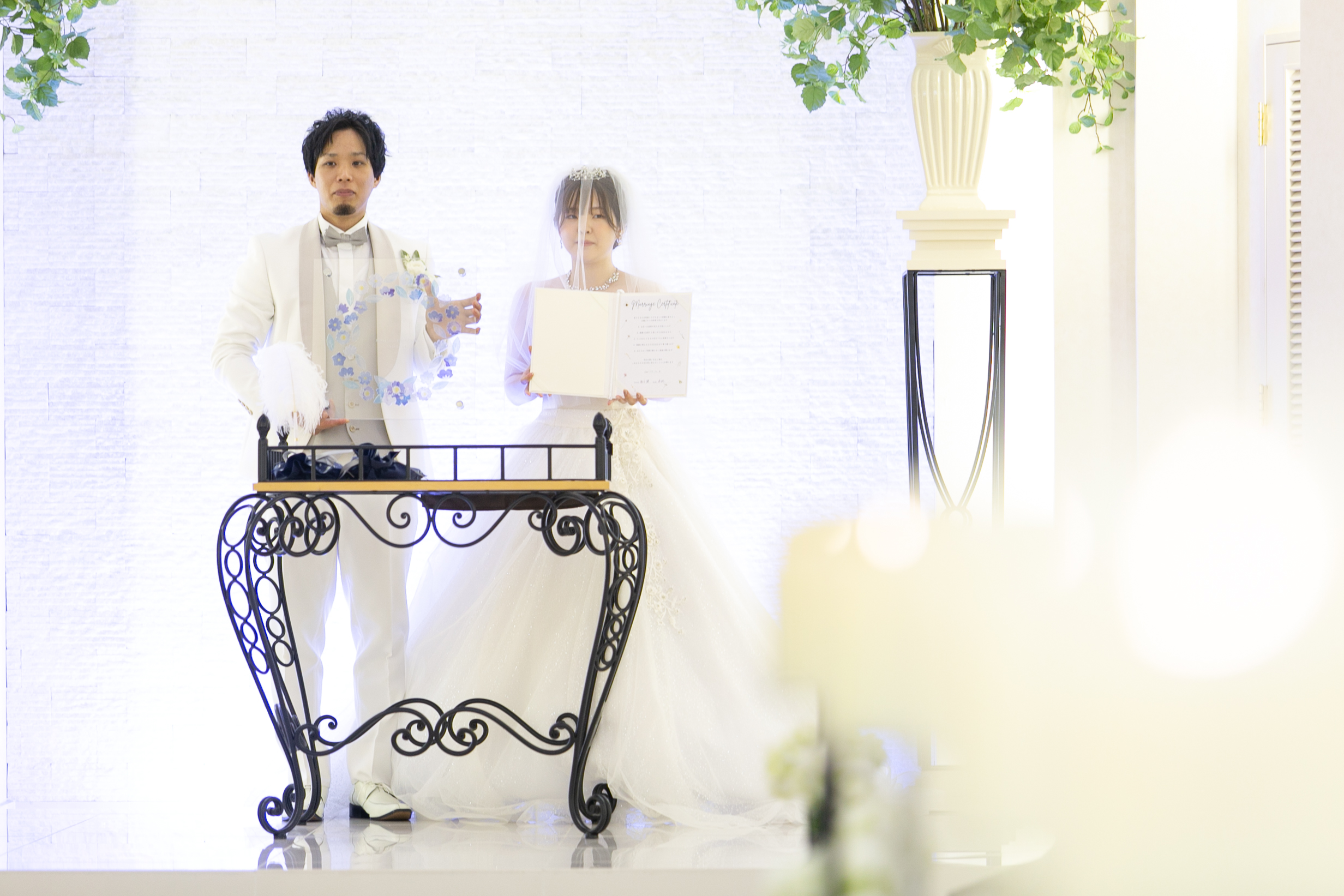Kenさん♡Akihoさん この度はご成婚誠におめでとうございます!! また、桔梗が丘ヴェルージュを選んでいただきありがとうございます。 ”ゲストと楽しむ”ことを大切にされたおふたり。 受付では、人前式の証人としてゲストおひとりおひとりの名前が記された世界に一つだけの結婚証明書を創るお手伝いと、タキシード&ドレス色当てにご協力いただきました!! ハイクオリティーのムービーやウエディングケーキ、再入場の登場アイテムはおふたりの大好きはあるゲームをテーマに! ゲストのおふたりも楽しみながら過ごされているご結婚式はとても笑顔溢れる1日になったかと思います。 KenさんとAkihoさんの末永いお幸せをヴェルージュスタッフ一同心よりお祈り申し上げます♪