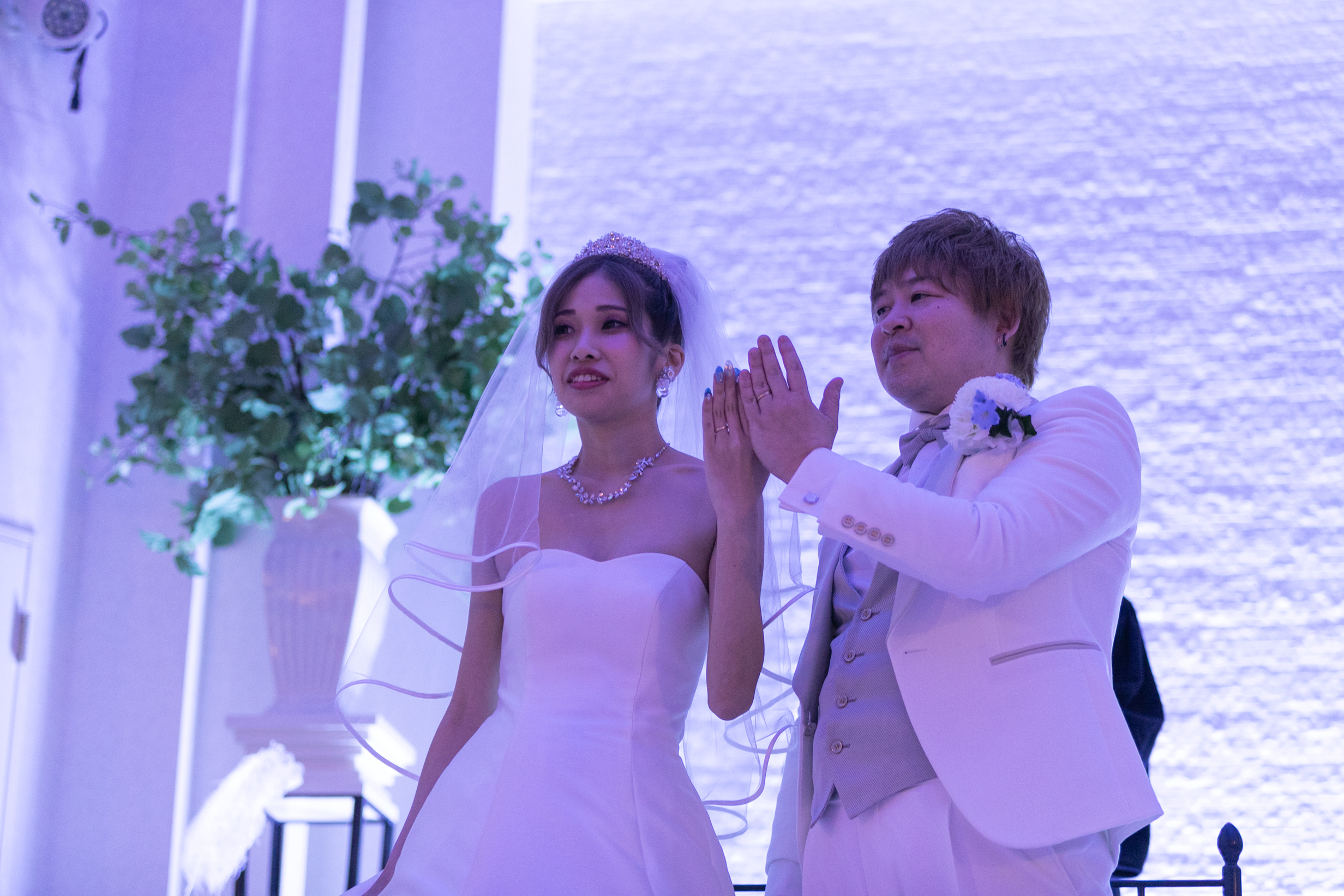Kojiさん♡Yuzukiさん この度はご成婚誠におめでとうございます!! 沢山お話しして、悩んで進めたおふたりのご結婚式は「好き」が詰まった素敵な空間でした。 ディズニーが大好きはおふたりは、新郎様が好きなプーさんと新婦様が好きなアリエルをたくさん使ってウェルカムスペースや会場コーディネートがディズニー一色に!! さらに新婦様が大好きな苺は、ケーキやブーケ・アクセサリーに取り入れて。 準備期間中に分かった妊娠...。 「何かしたい!!」との思いで決めたゲストの皆様への妊娠発表&性別発表は大盛り上がりでしたね!! また、新郎様のお仕事が美容師という事でお色直しではサプライズヘアカットを実行!! ロングヘアからバッサリと短くなって登場した新婦様に皆様驚かれておりました!! ゲスト想いのおふたりだからこそのご結婚式は本当に素敵でした。 おふたりの宝物が生まれた今、家族3人仲良く幸せな家庭を築いていってくださいね♪ 末永くお幸せに...♡